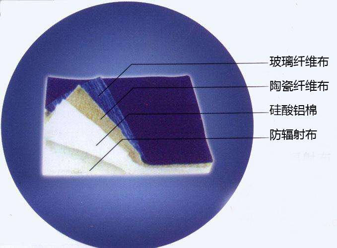 窗簾由四層防火材料制成,分別有玻璃纖維布、硅酸鋁棉、陶瓷纖維布和輻射防護(hù)布。